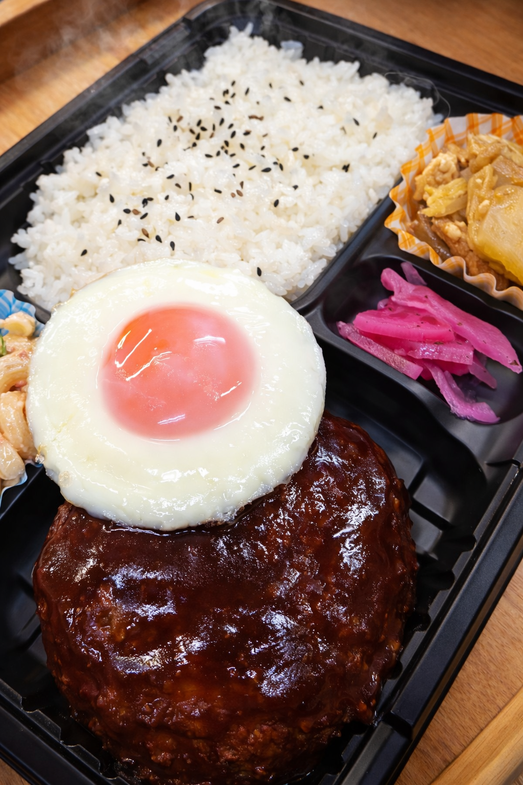 ハンバーグ、目玉焼き、ブロッコリー